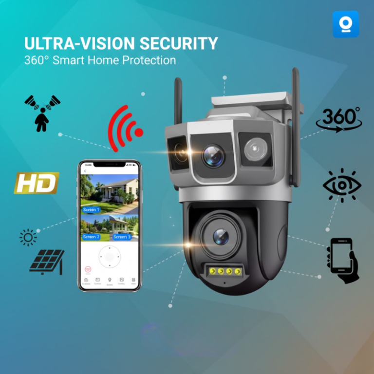 3 lens solar PTZ camera System | 360° Outdoor Smart CCTV