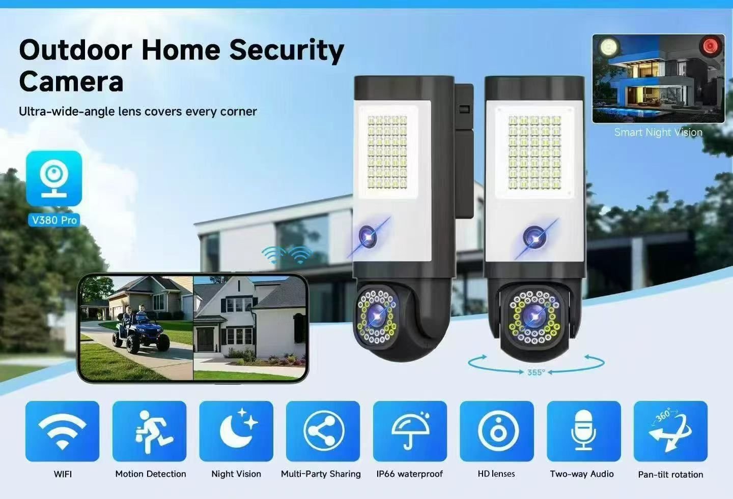 This smart camera supports two-way audio, allowing you to listen and talk through the camera—perfect for home security, baby monitoring, or shop surveillance. Its WiFi connectivity makes installation simple, with no complex wiring required.